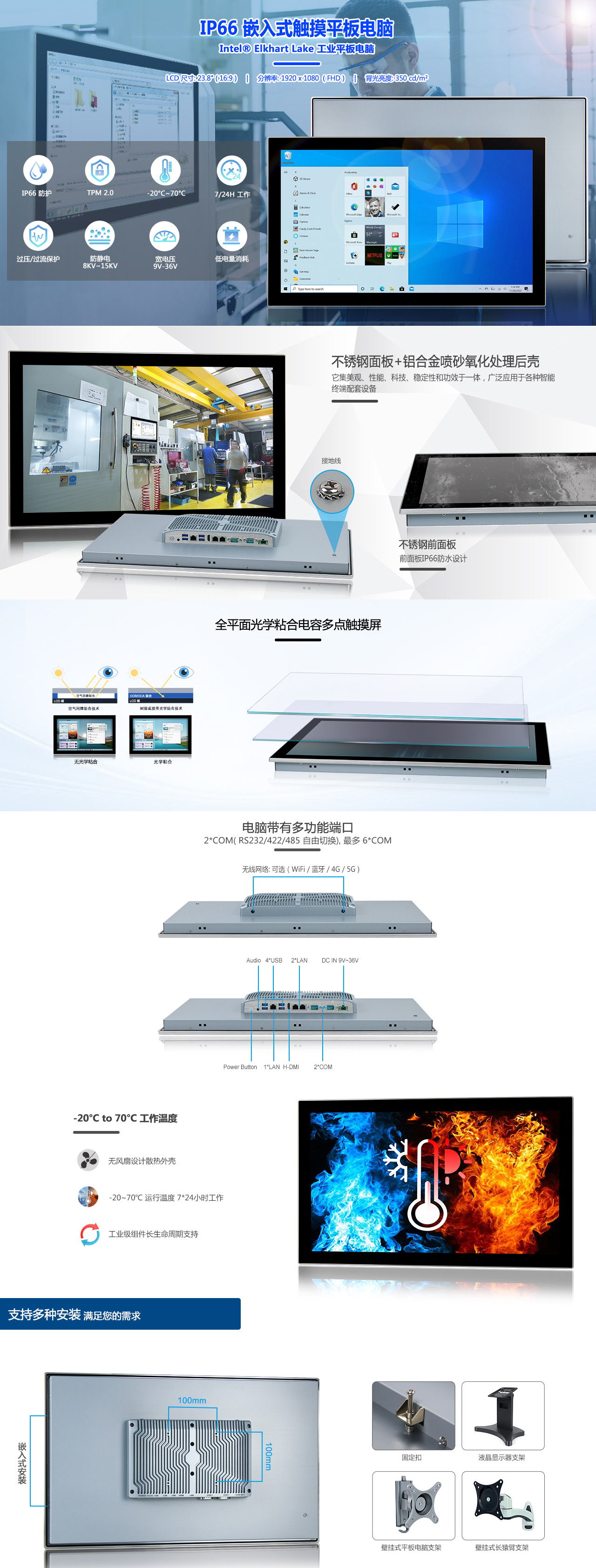 - 工业级23.8" FHD LCD屏,30k背光寿命