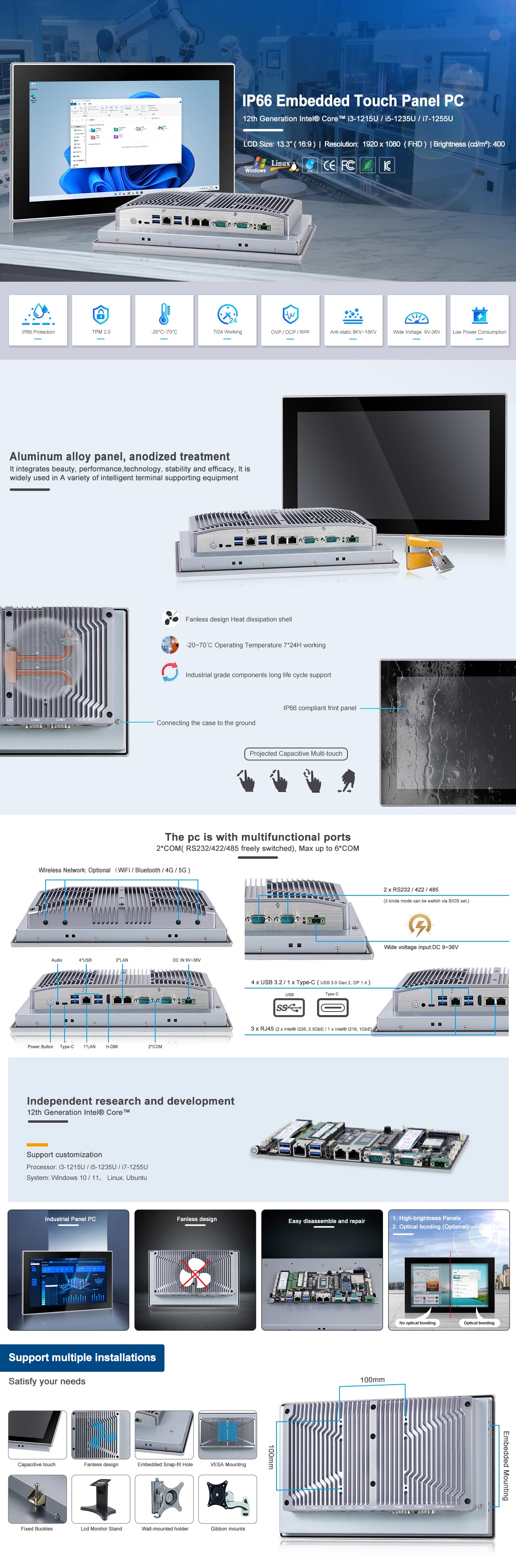 - Industrial-grade 13.3" FHD LCD panel with 50k backlight lifetime