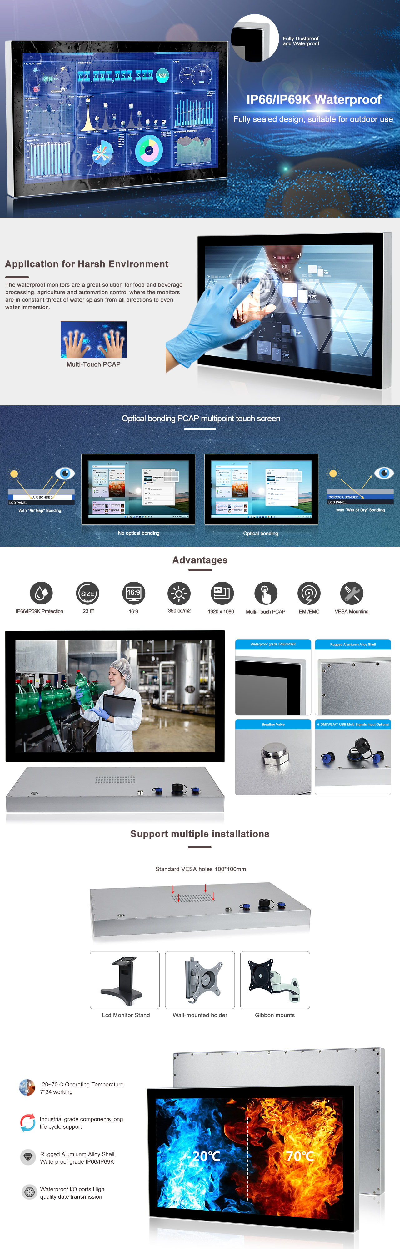 - Industrial-grade 23.8" FHD LCD panel with 30k backlight lifetime