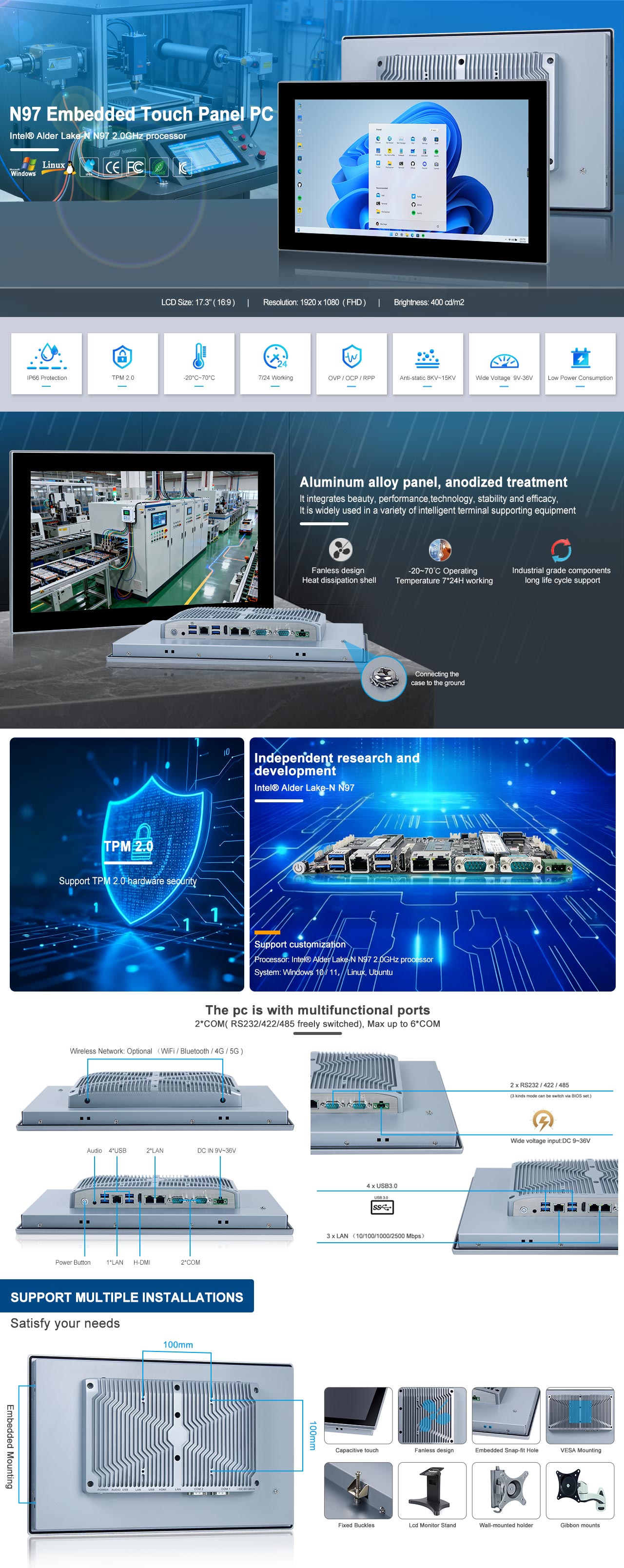 - Industrial-grade 17.3" FHD LCD panel with 50k backlight lifetime