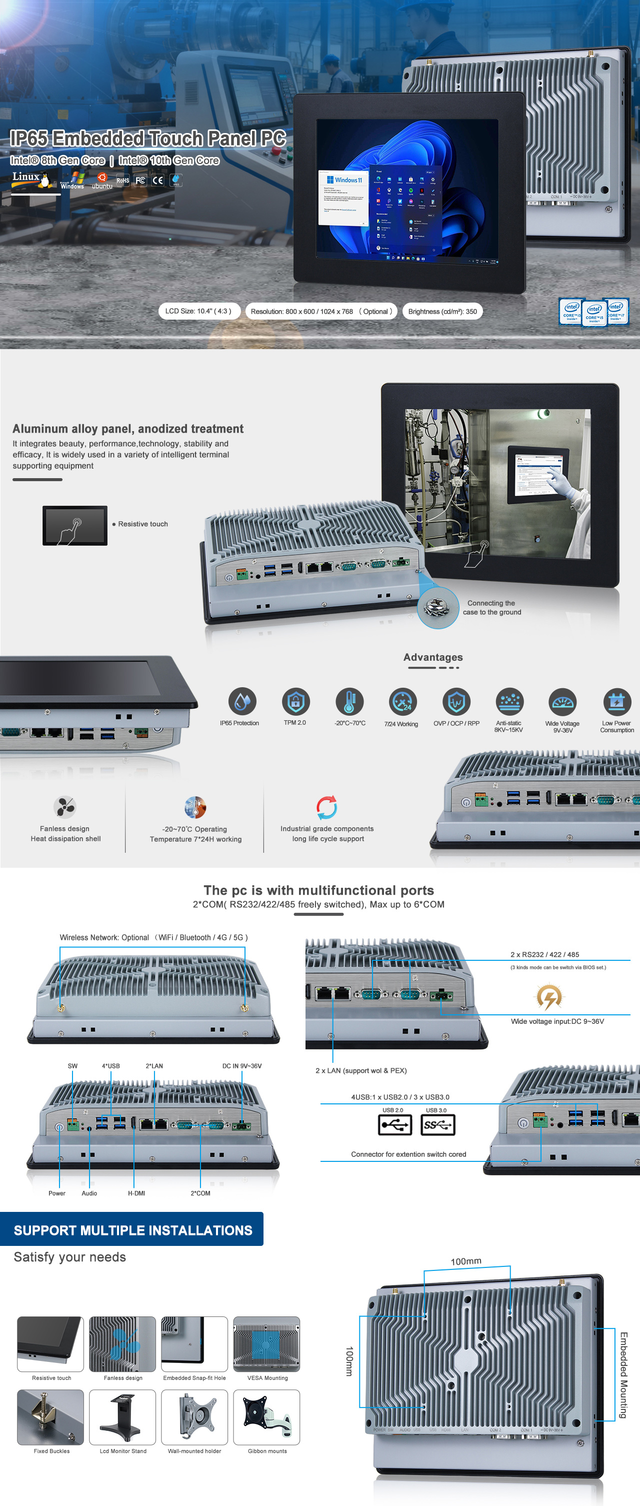 - Industrial-grade 10.4" XGA LCD panel with 30k backlight lifetime