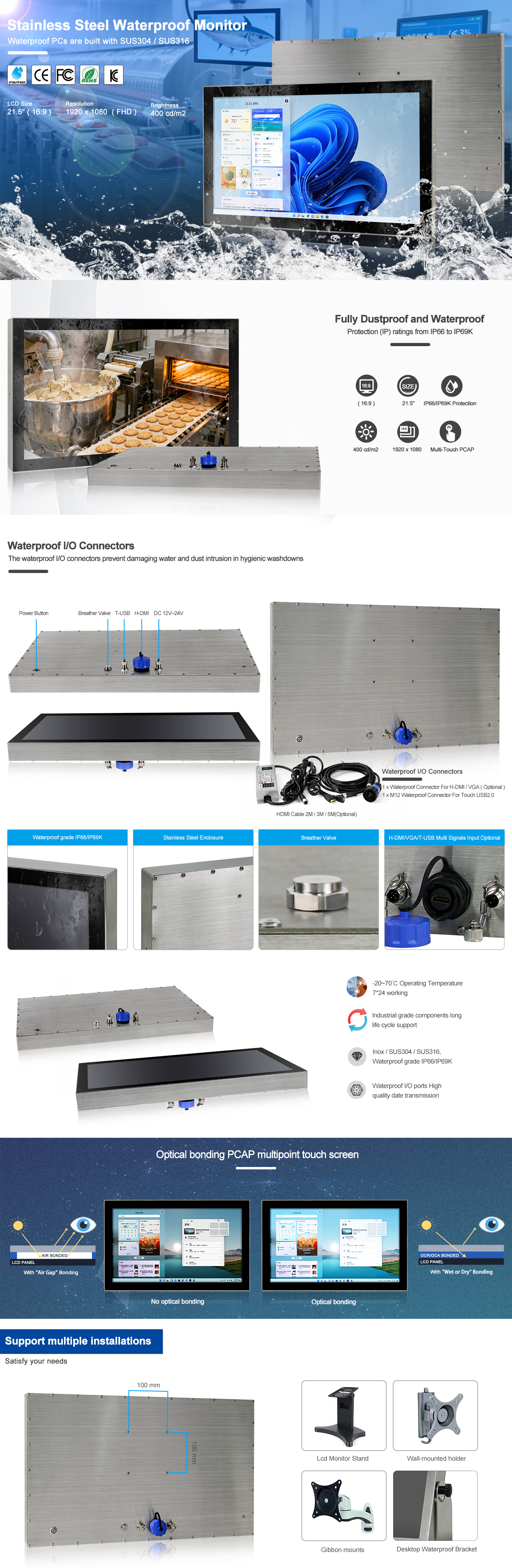 - Industrial-grade 21.5" FHD LCD panel with 50k backlight lifetime