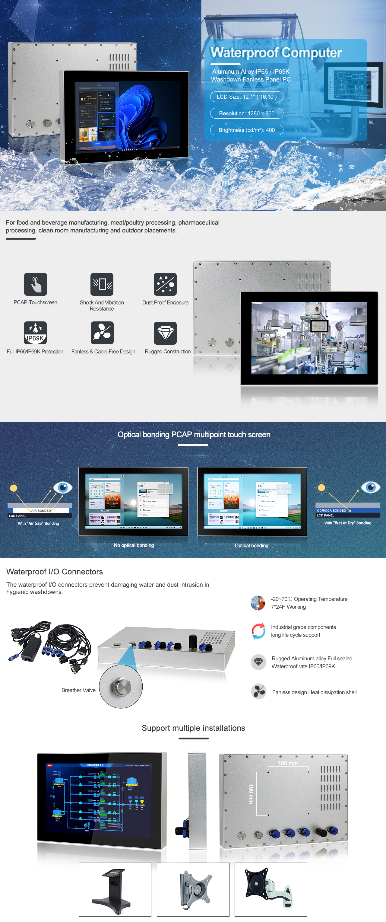 - Industrial-grade 12.1" WXGA LCD panel with 50k backlight lifetime